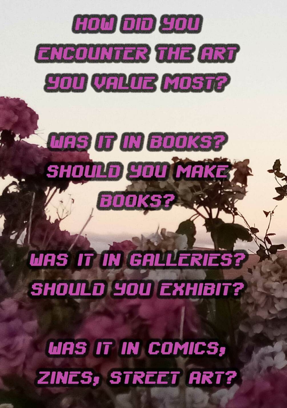 An aggressively ugly digital zine about examining one's motivations for making art.